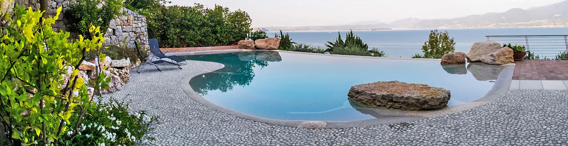 Agregados de quartzo e mármore aplicados à mão, ligados por resina de alto desempenho, criam a aparência final da sua piscina. Disponível em várias texturas e cores — desde areia fina e sedosa até autênticos seixos de praia.